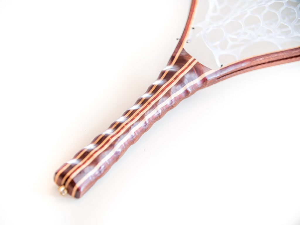 Handcrafted 28 inch landing net created from claro walnut, lacewood, curly maple, and walnut.